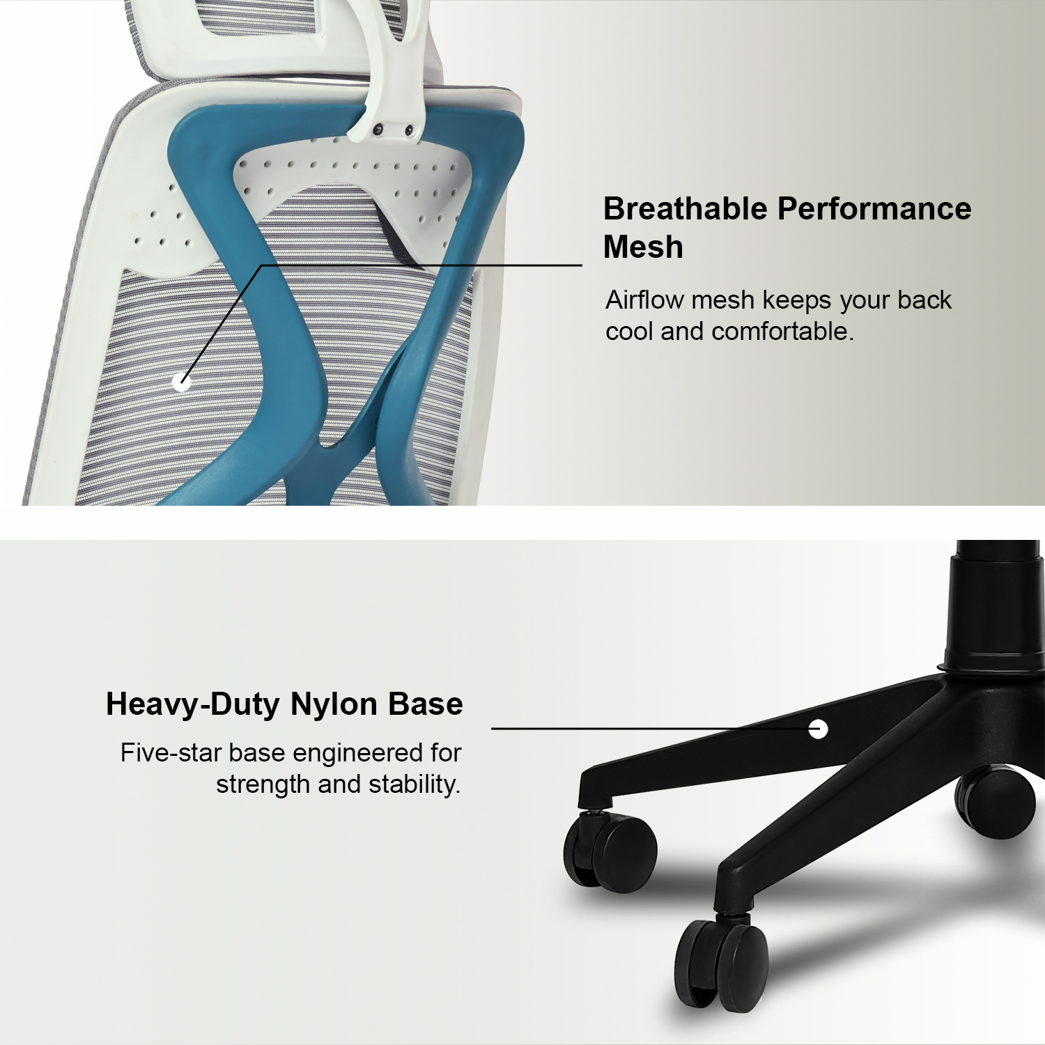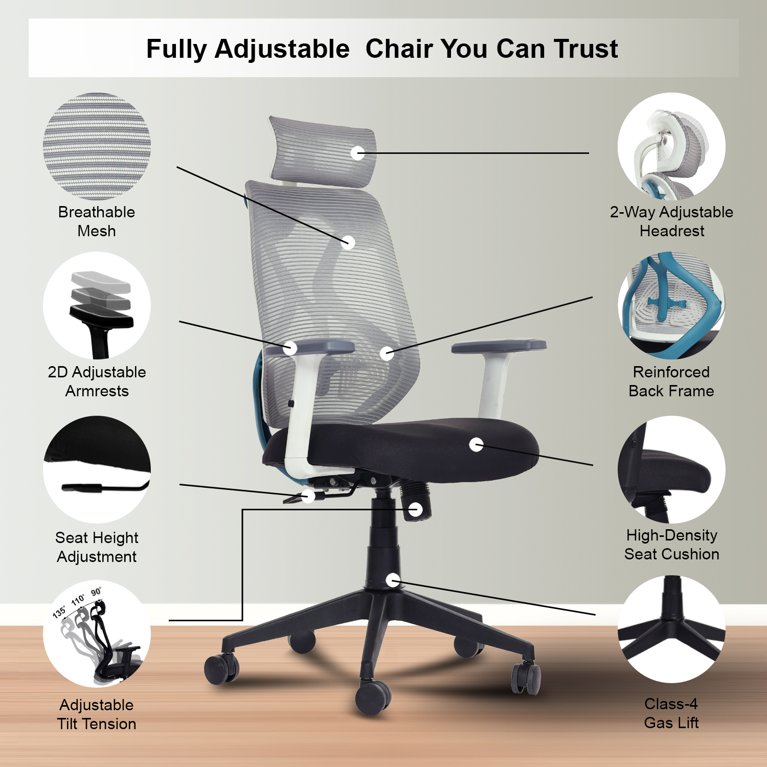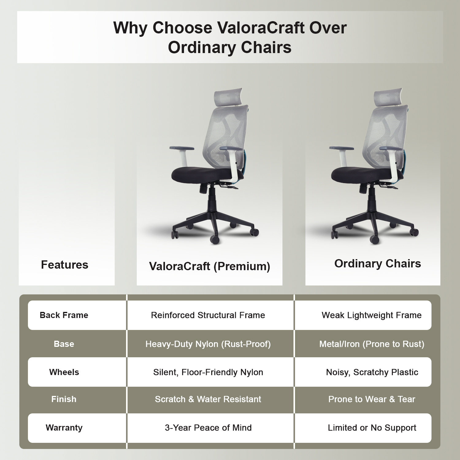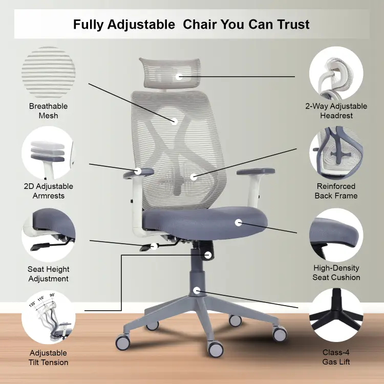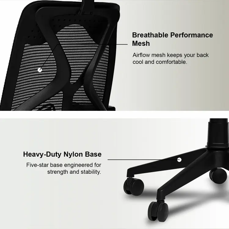The Valora Craft Bolt ergonomic office chair combines breathable mesh, adjustable headrest and lumbar support, a Class-4 gas lift, and smooth 360° swivel movement. Built with a reinforced frame and durable metal base, this comfortable office chair delivers reliable support and stability for long study sessions, office work, or gaming.